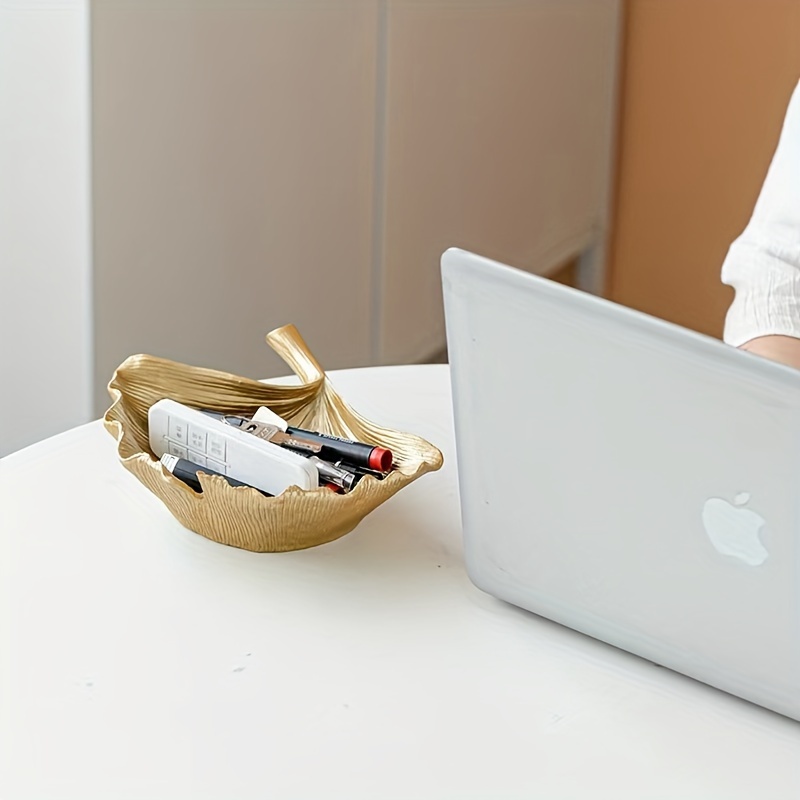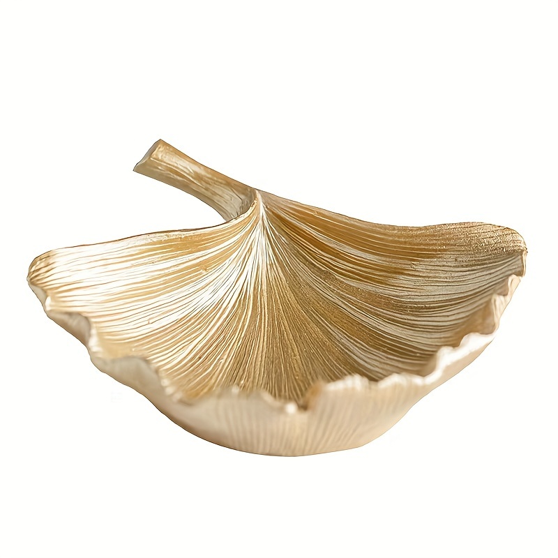 Elevate your décor with this stunning Art Deco-inspired gold leaf tray, crafted from durable resin and finished with a soft metallic sheen. Its sculpted fan-leaf shape makes it a statement accent piece while remaining functional for everyday use.