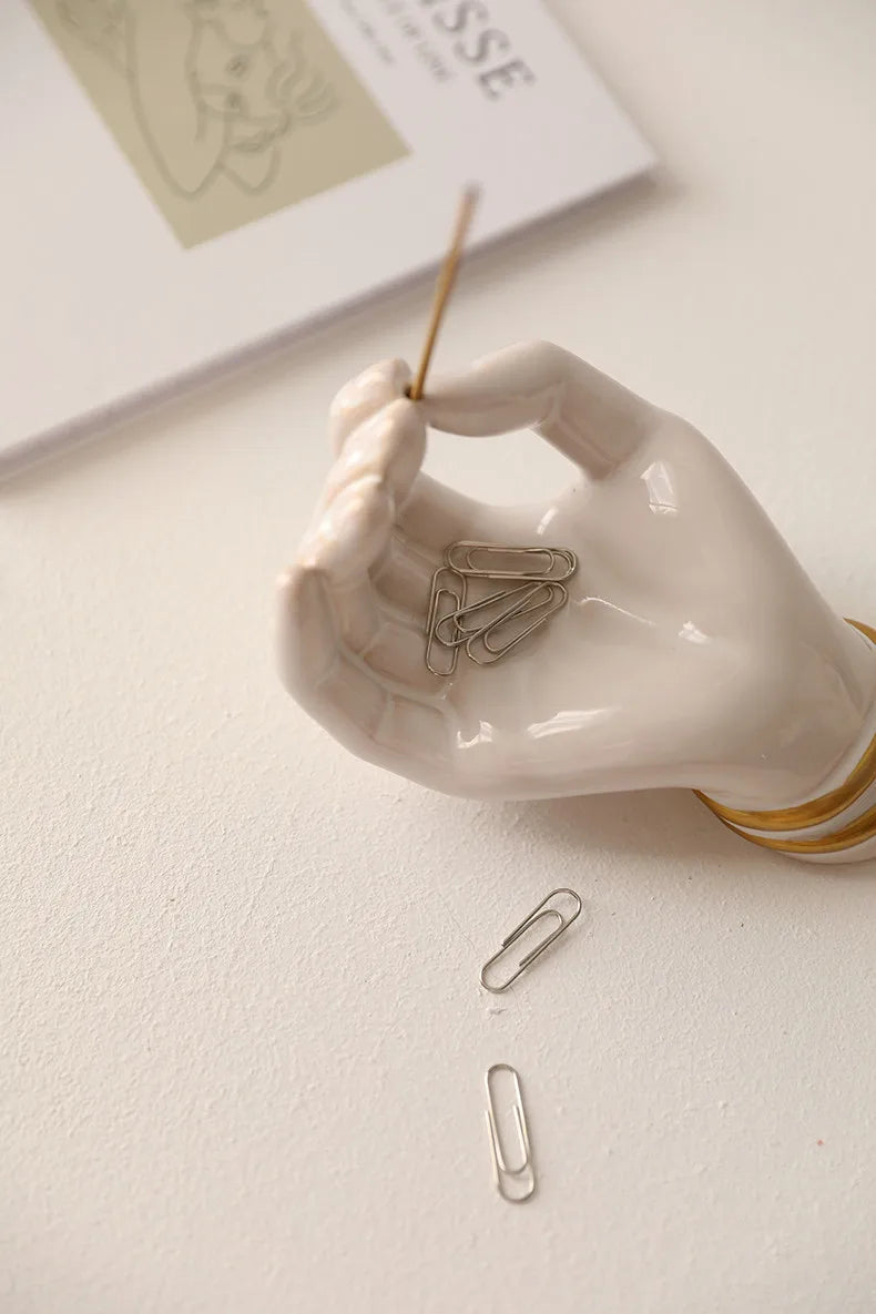 Create a peaceful ritual with this handcrafted ceramic incense holder shaped like an elegant 3D palm. Designed as both décor and a functional incense burner, it adds warmth, intention, and aesthetic charm to any room. Its smooth ceramic finish and minimalist form bring a serene, grounding presence to bedrooms, living rooms, meditation spaces, and entryways.